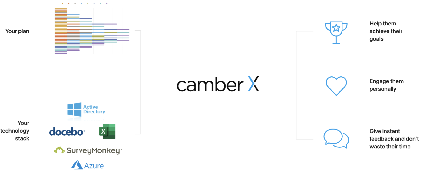 - camberX bridges the gap between complex plans and moving people to measurable action.