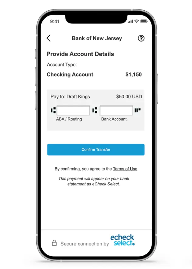 The eCheck Select offering had one major flaw with users of online gambling platforms like DraftKings, the brand name was not recognizable and often skipped over. This was a key challenge that had to be overcome to get users in the payments processing flow. In conducting research, two key features were found to greatly impact customers’ understanding of what eCheck Select was.