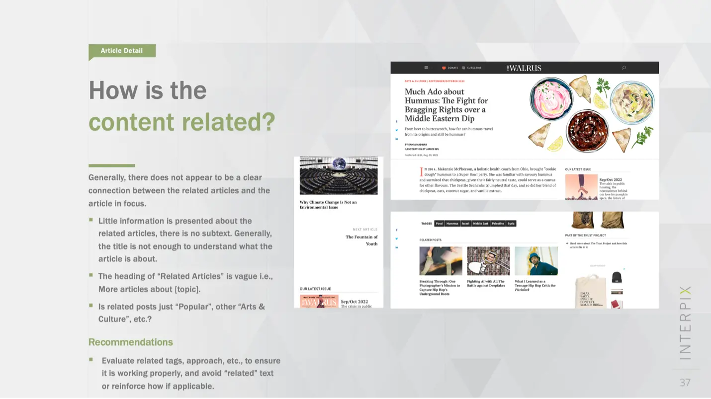 Using our in-depth analysis, The Walrus has been able to build off our recommendations and implement the strategies recommended. This has drastically improved not only the visual appeal of the website, but more importantly, the usability.