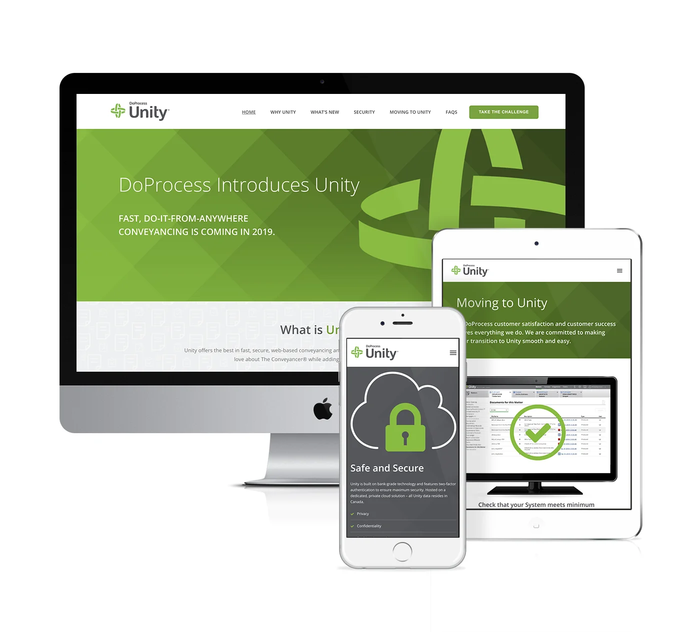 DoProcess is Canada’s leading provider of automation and technology solutions for legal professionals. Their award-winning real estate law software solution – The Conveyancer – was redesigned and relaunched on the cloud under the new product name Unity. DoProcess chose Interpix to design and develop its Unity onboarding site. New and existing customers can use the site to learn about Unity’s benefits, view their personal implementation schedule, watch videos about new automated features and have all their questions about moving to Unity answered.